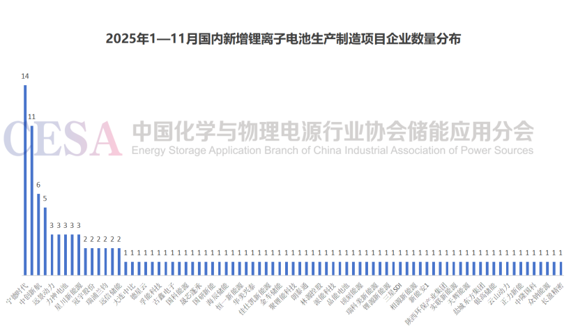 根据CESA储能应用分会产业数据库不完全统计,截至2025年1—11月,国内新增的锂离子电池生产制造项目达132个,计划年产能直指1803GWh。其中97个项目披露的投资总额累计4282.7亿元,资本的洪流滚滚而下勾勒出一幅既波澜壮阔又暗藏玄机的产业全景。